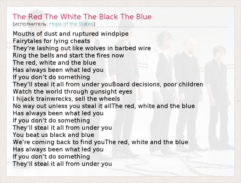 А как ты думаешь, о чем песня "The Red The White The Black The Blue" ?