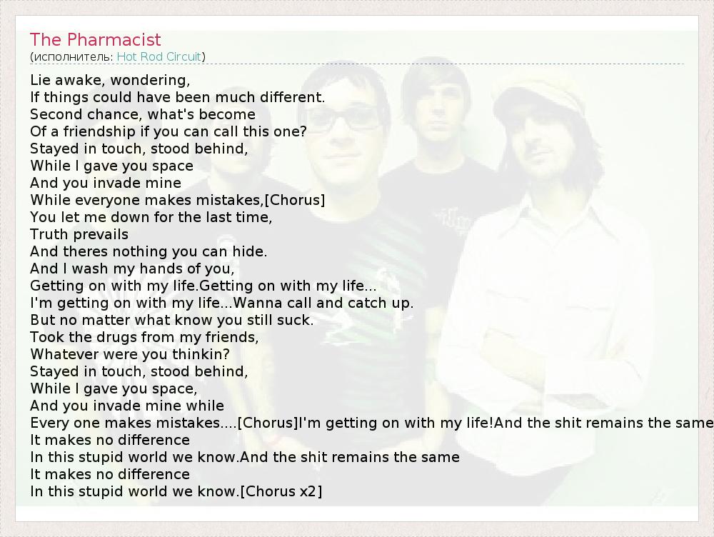 А как ты думаешь, о чем песня "The Pharmacist" ?