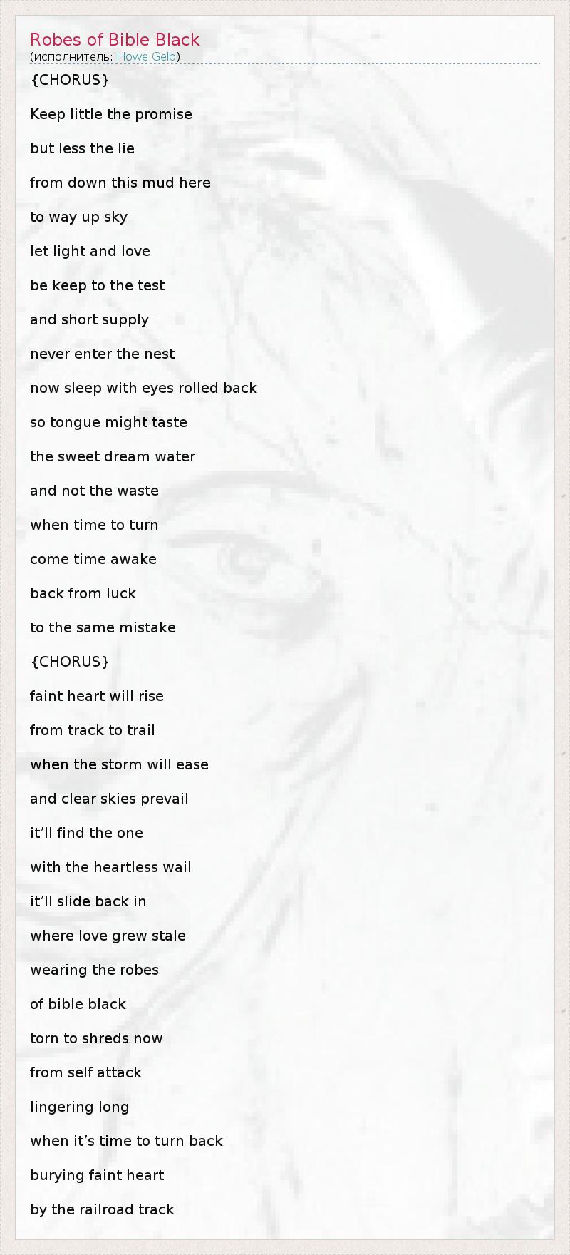 А как ты думаешь, о чем песня "Robes of Bible Black" ?