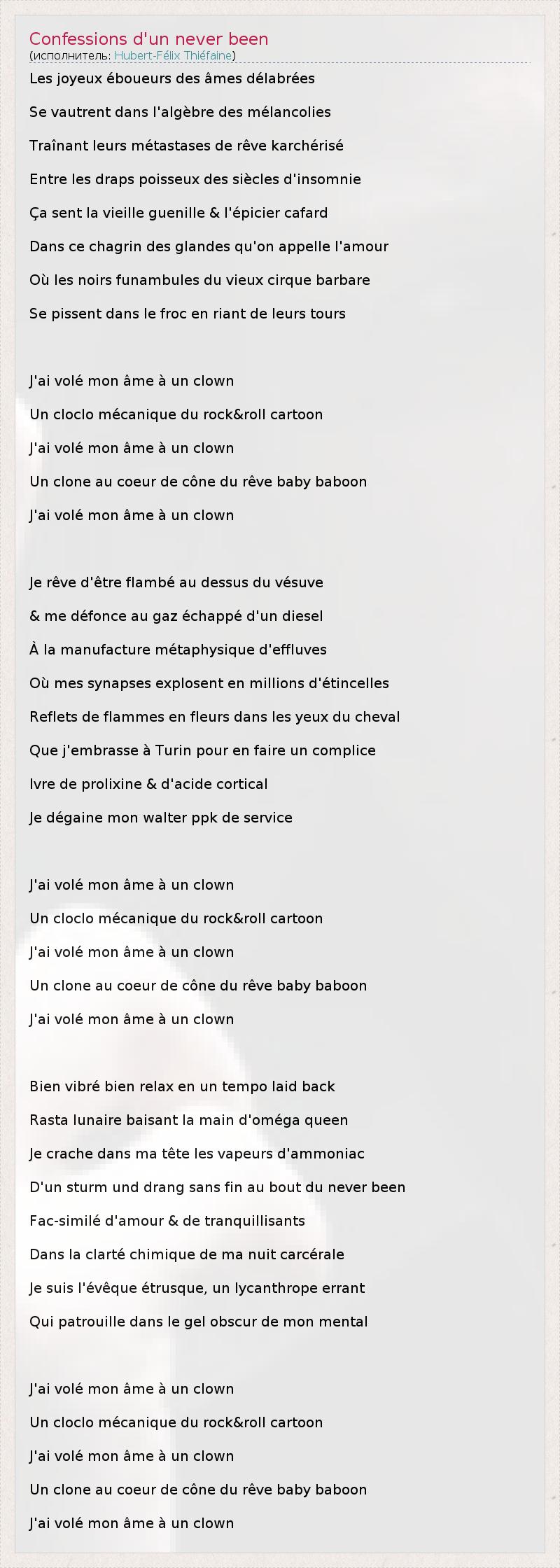 А как ты думаешь, о чем песня "Confessions d'un never been" ?