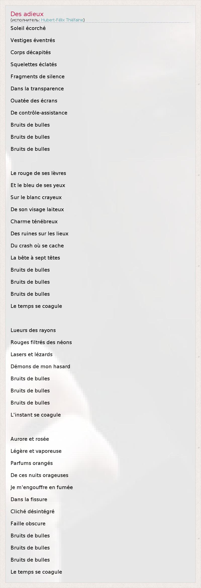 альбомы: La Tentation Du Bonheur, La tentation du bonheur / Le bonheur de la tentation, En concert à Bercy, Séquelles