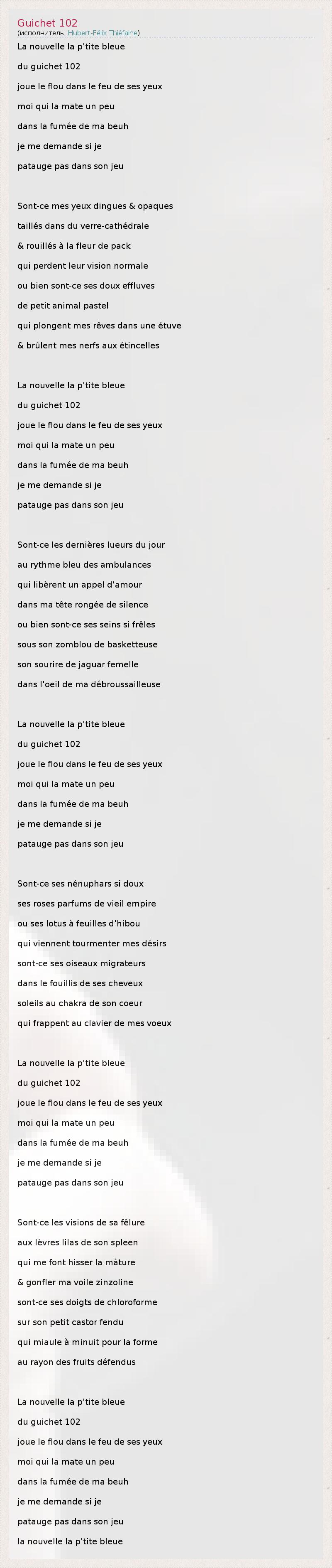 А как ты думаешь, о чем песня "Guichet 102" ?