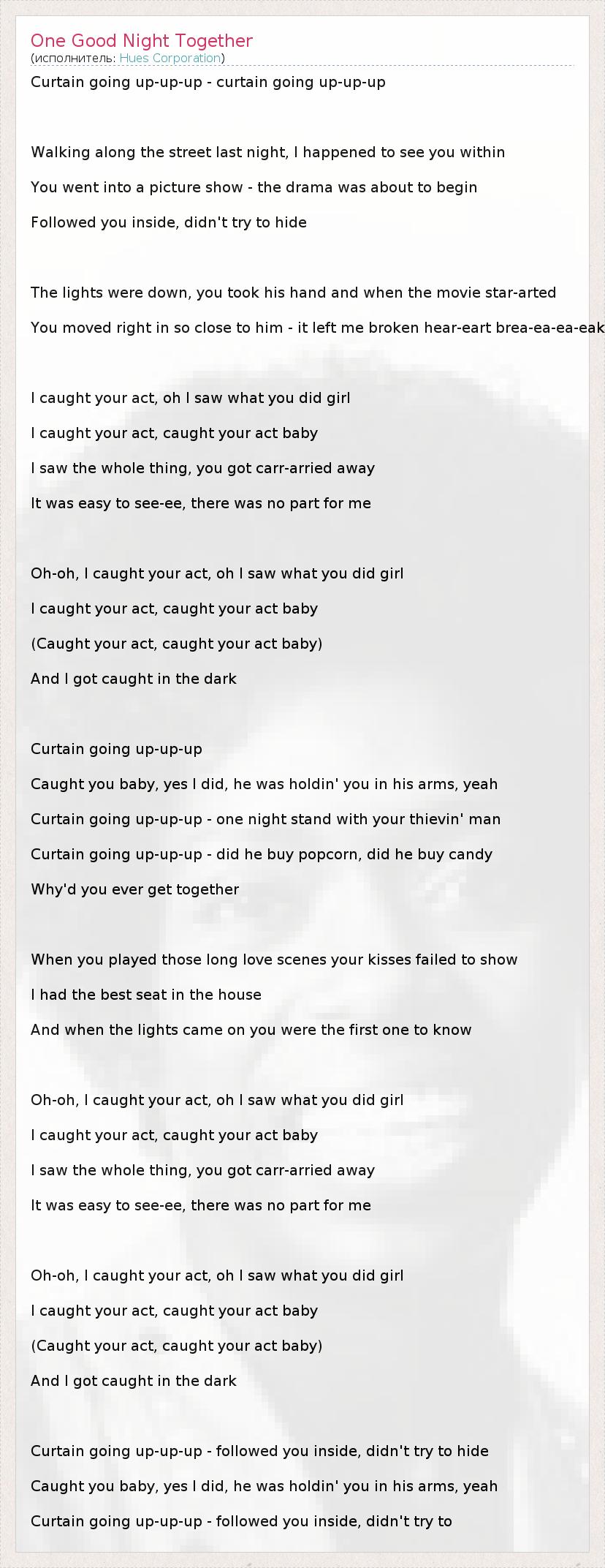 А как ты думаешь, о чем песня "One Good Night Together" ?