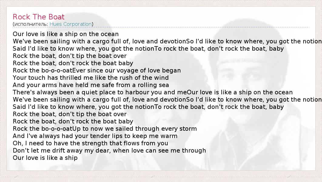 А как ты думаешь, о чем песня "Rock The Boat" ?