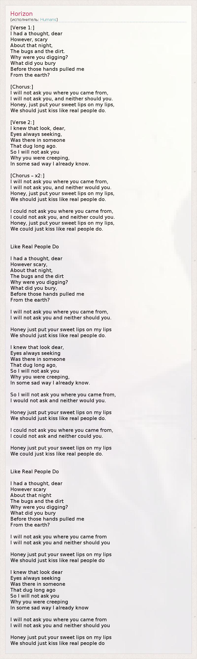 Как настоящие люди (перевод DoctorBarty из Санкт-Петербурга)