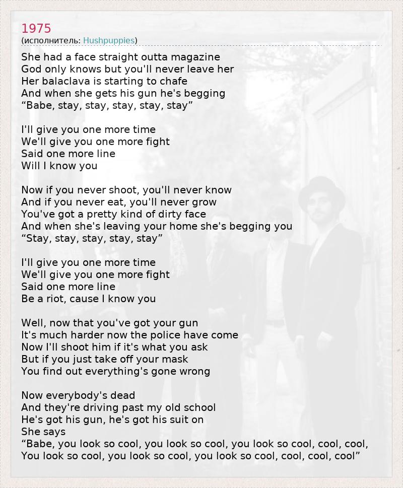 “Babe, you look so cool, you look so cool, you look so cool, cool, cool,