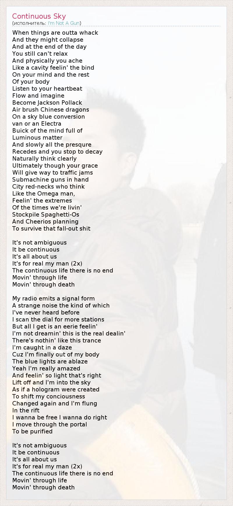А как ты думаешь, о чем песня "Continuous Sky" ?