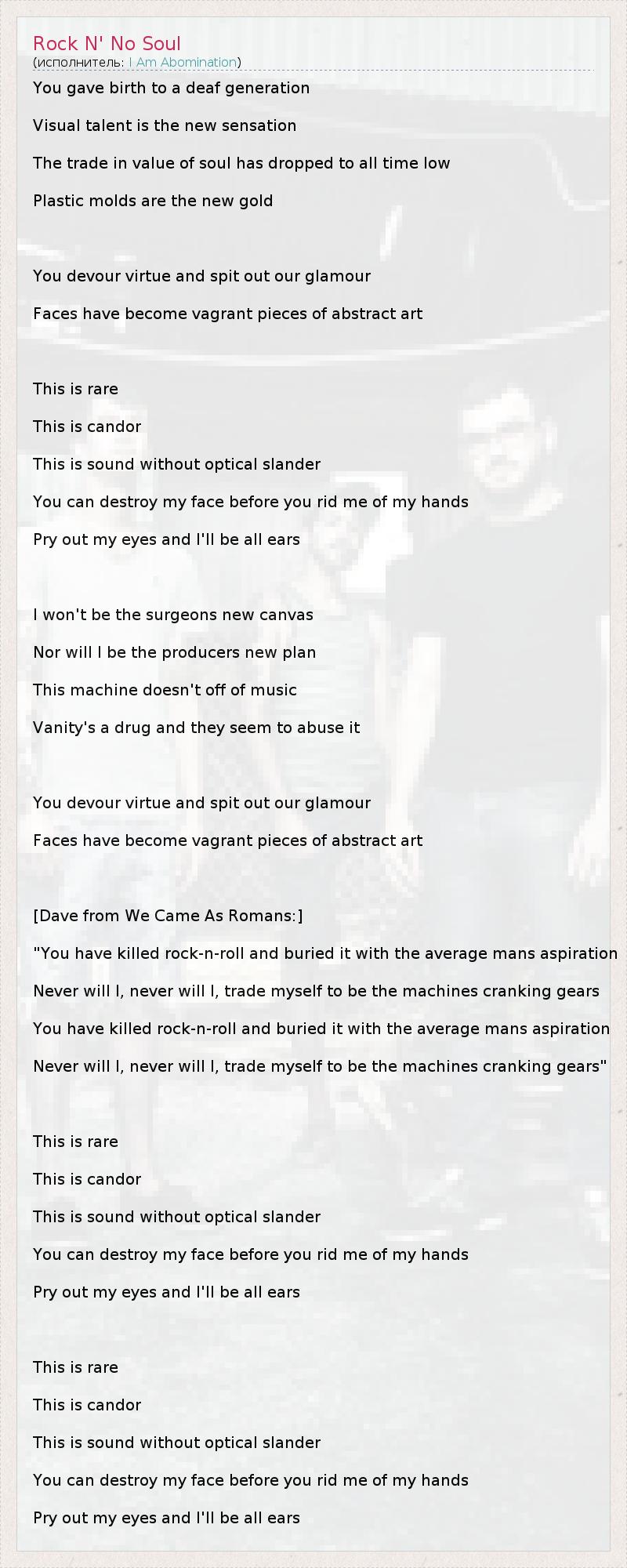 А как ты думаешь, о чем песня "Rock N' No Soul" ?