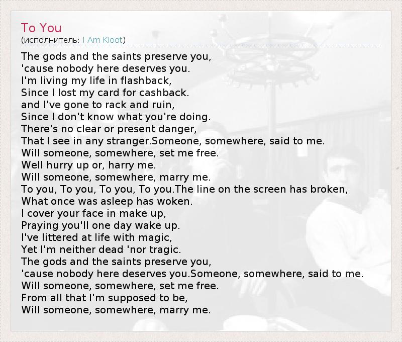 'cause nobody here deserves you.Someone, somewhere, said to me.