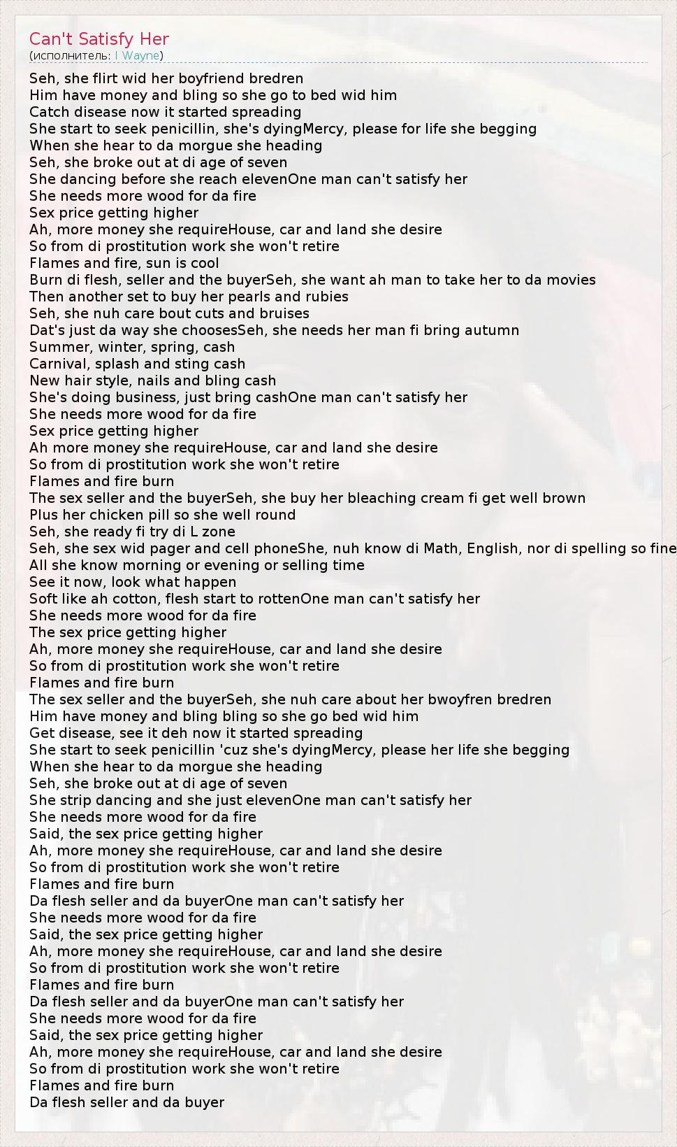 А как ты думаешь, о чем песня "Can't Satisfy Her" ?