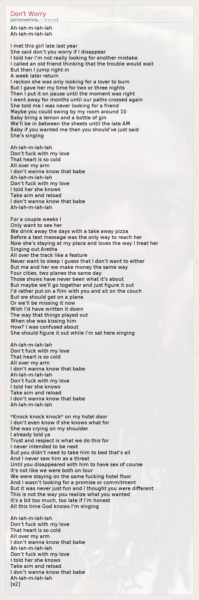 А как ты думаешь, о чем песня "Don't Worry" ?
