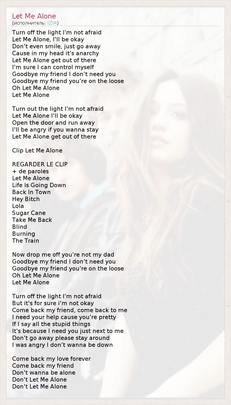 А как ты думаешь, о чем песня "Let Me Alone" ?
