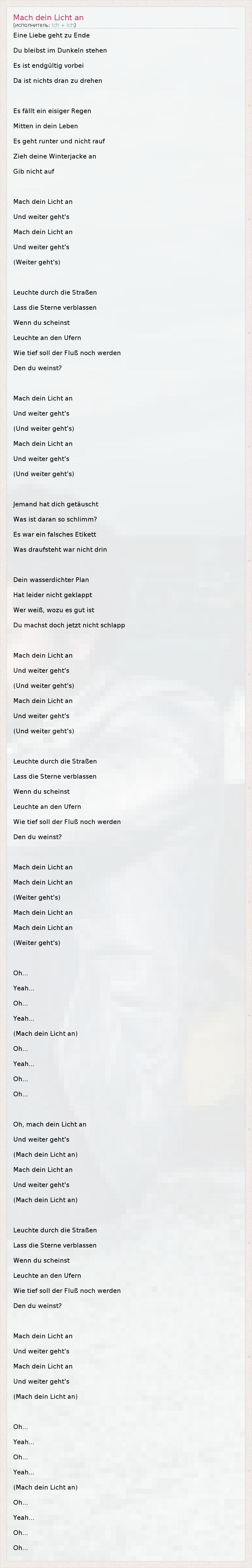 А как ты думаешь, о чем песня "Mach dein Licht an" ?