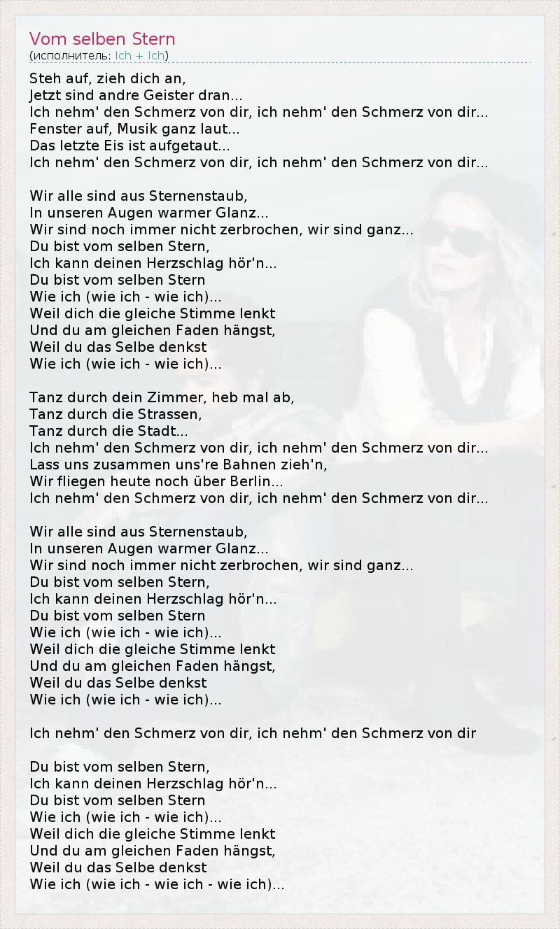 А как ты думаешь, о чем песня "Vom selben Stern" ?