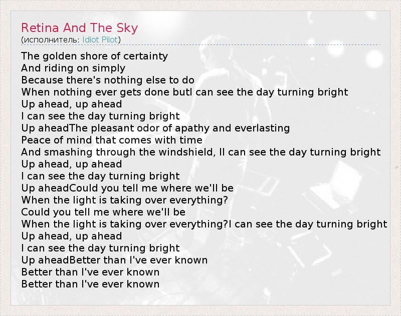 А как ты думаешь, о чем песня "Retina And The Sky" ?