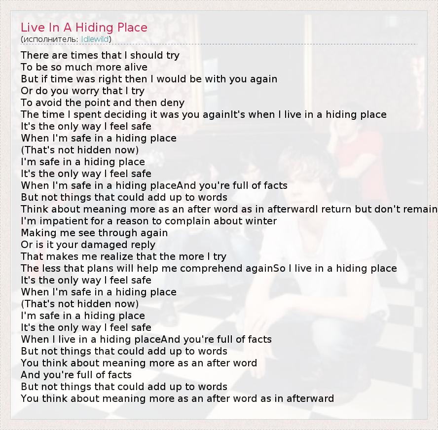 А как ты думаешь, о чем песня "Live In A Hiding Place" ?
