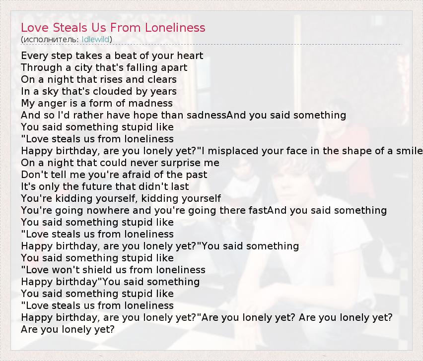 А как ты думаешь, о чем песня "Love Steals Us From Loneliness" ?