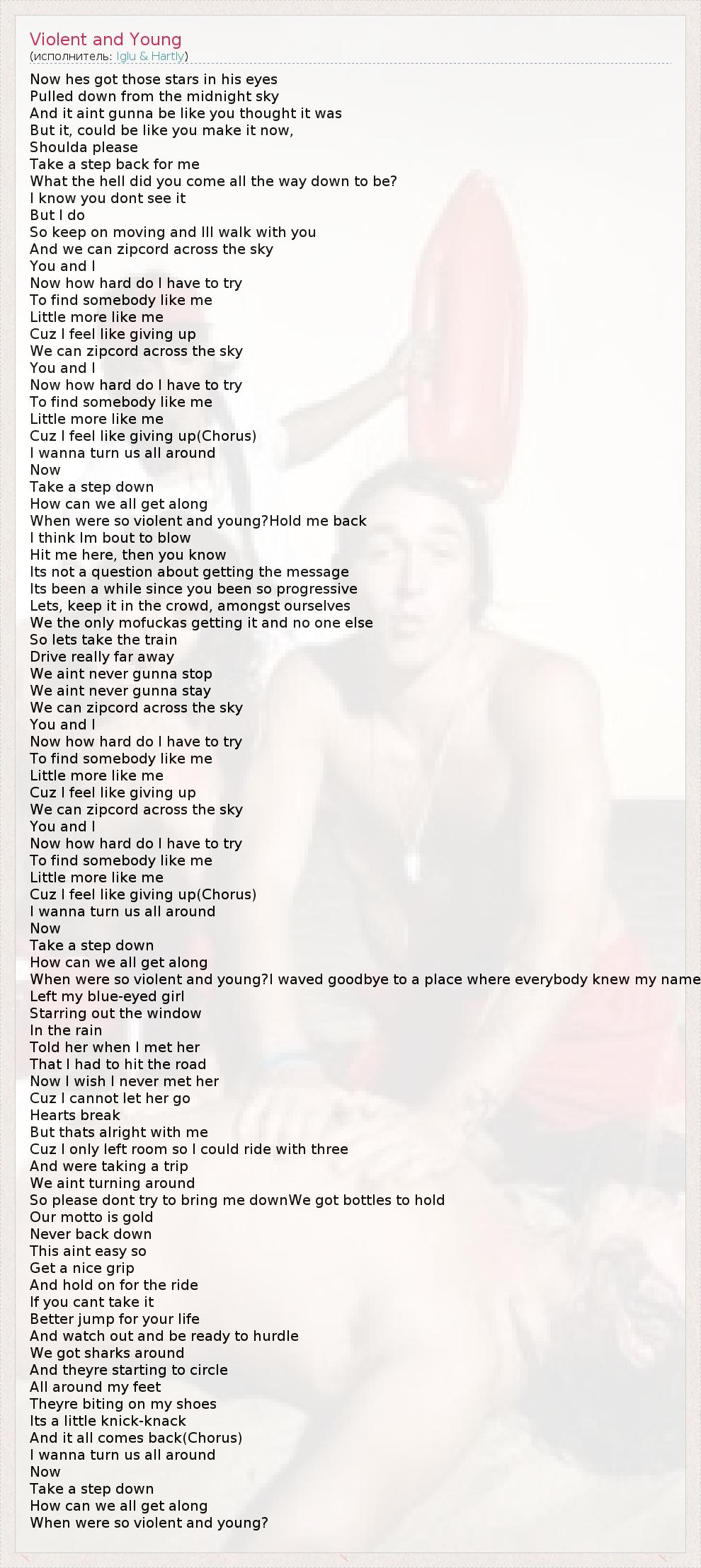 А как ты думаешь, о чем песня "Violent and Young" ?