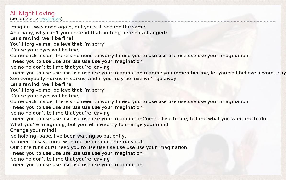 А как ты думаешь, о чем песня "All Night Loving" ?