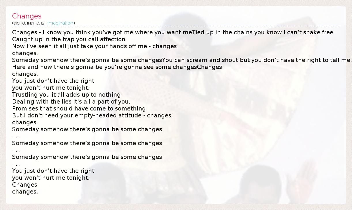 Changes - I know you think you've got me where you want meTied up in the chains you know I can't shake free.