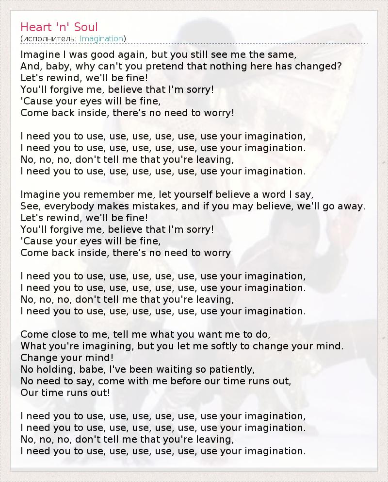 А как ты думаешь, о чем песня "Heart 'n' Soul" ?