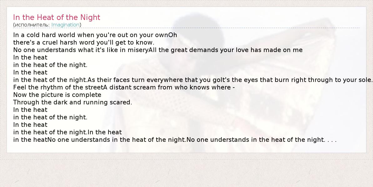 ГлавнаяИсполнителиImaginationIn the Heat of the Night