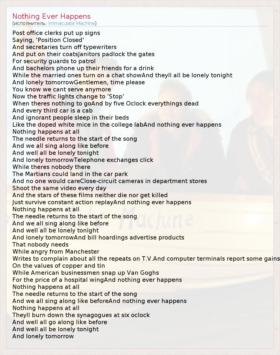 А как ты думаешь, о чем песня "Nothing Ever Happens" ?