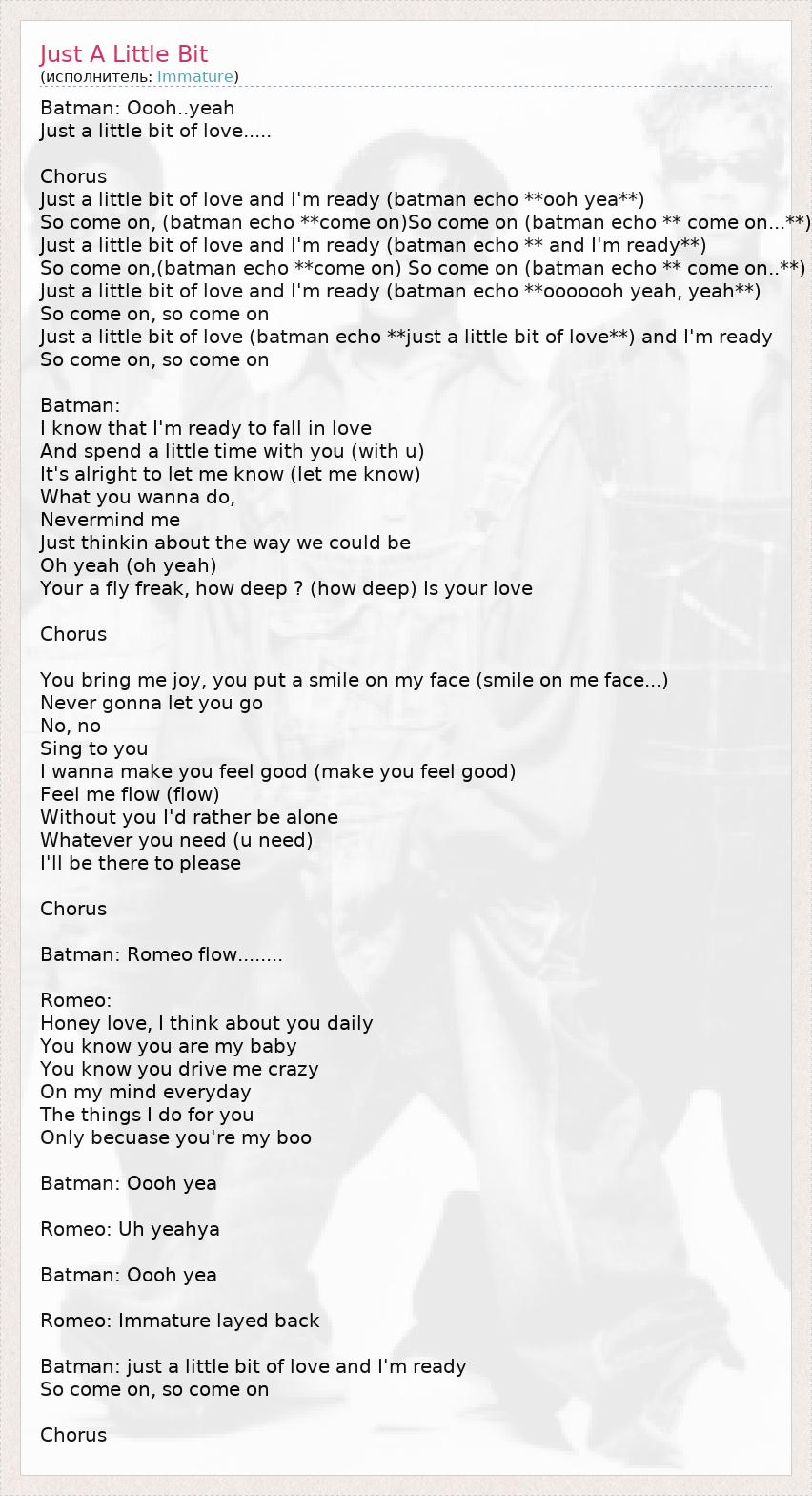 Just a little bit of love and I'm ready (batman echo **ooooooh yeah, yeah**)