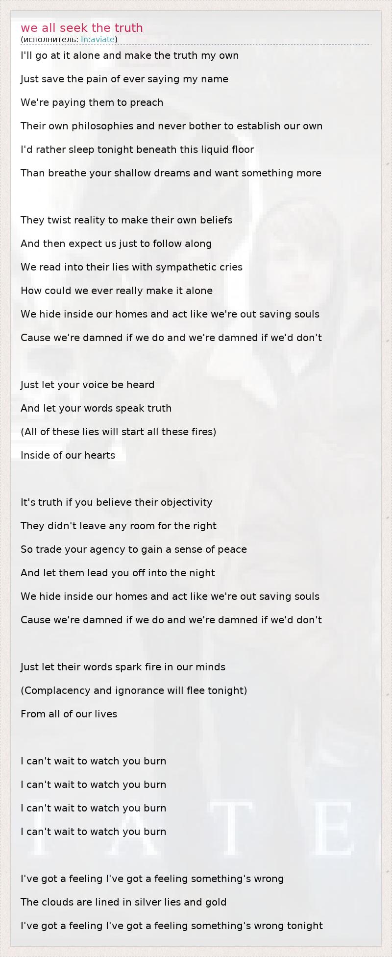 А как ты думаешь, о чем песня "we all seek the truth" ?
