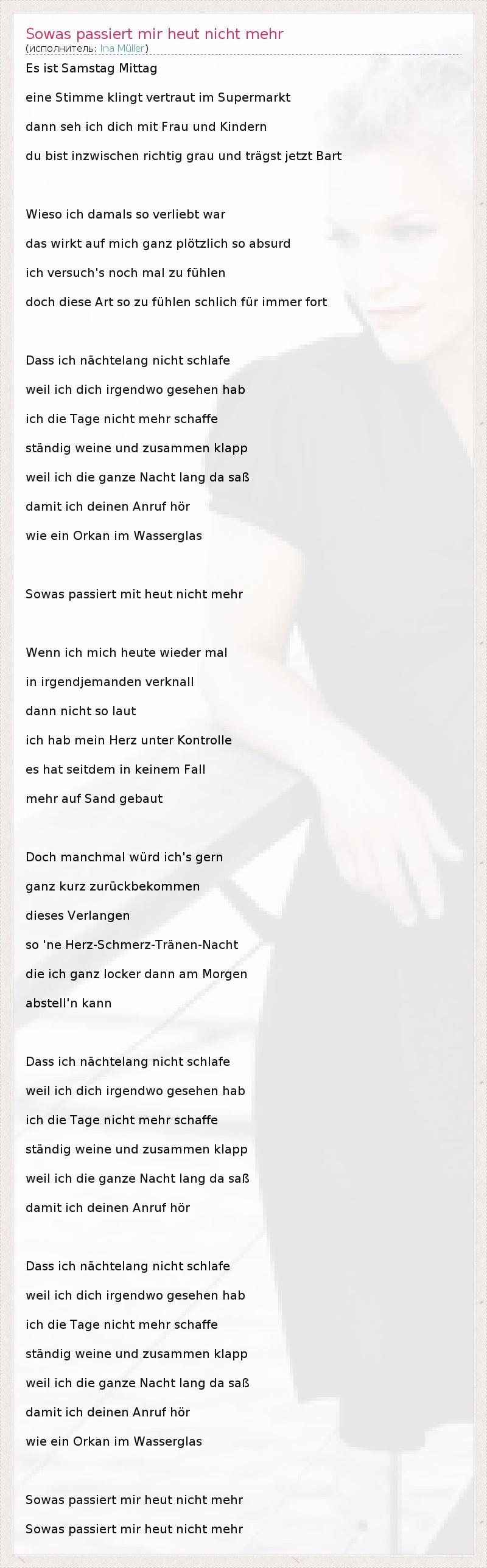 ГлавнаяИсполнителиIna MüllerSowas passiert mir heut nicht mehr