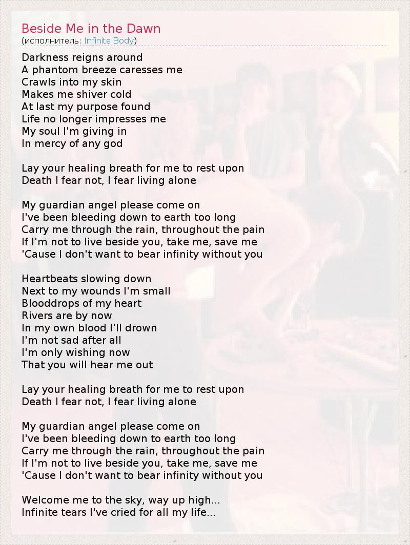 А как ты думаешь, о чем песня "Beside Me in the Dawn" ?
