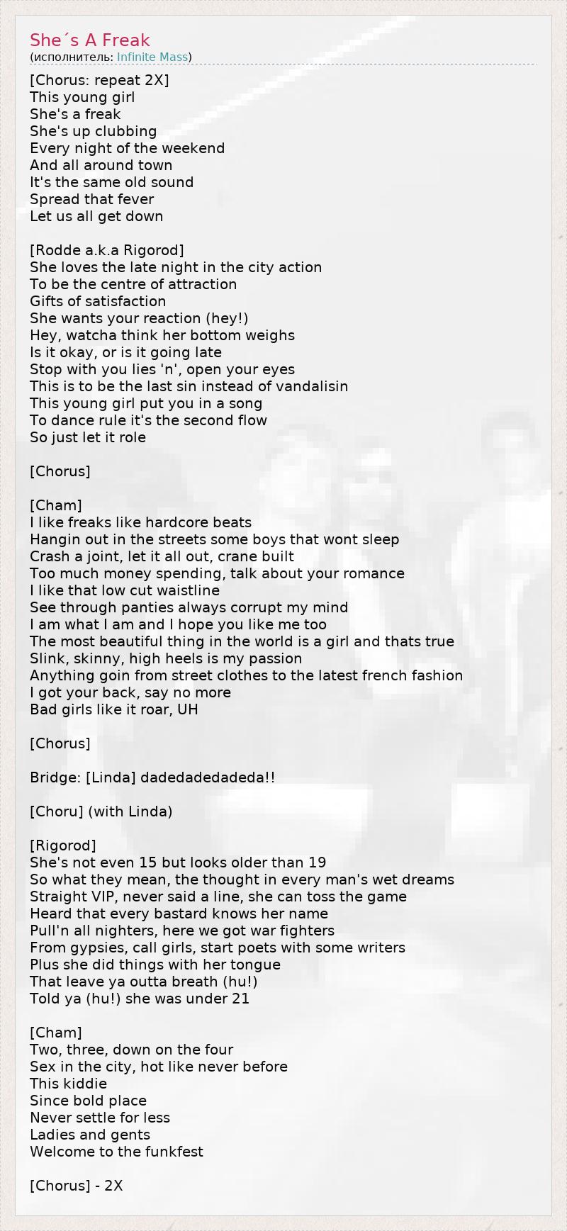 А как ты думаешь, о чем песня "She´s A Freak" ?