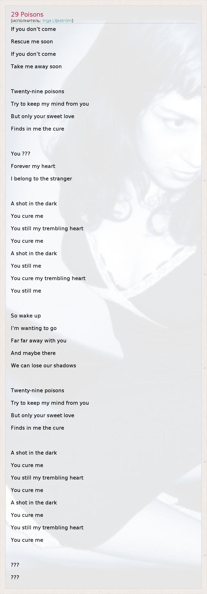 А как ты думаешь, о чем песня "29 Poisons" ?