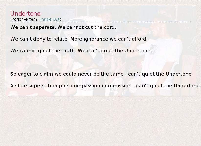 We cannot quiet the Truth. We can't quiet the Undertone.
