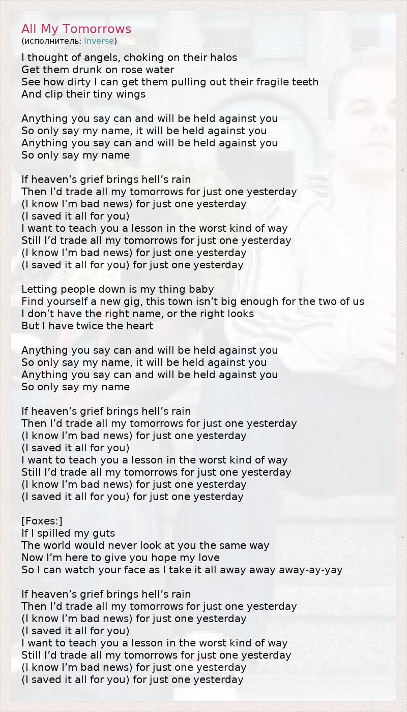 А как ты думаешь, о чем песня "All My Tomorrows" ?