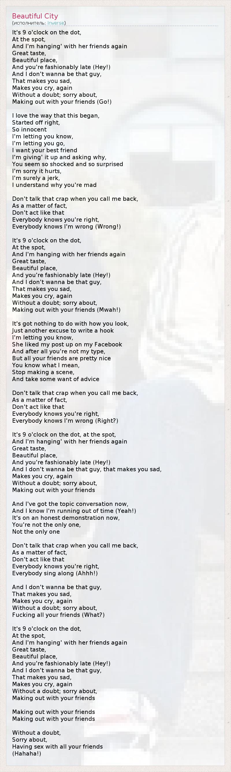 А как ты думаешь, о чем песня "Beautiful City" ?