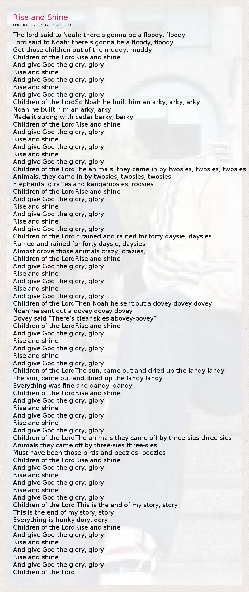 А как ты думаешь, о чем песня "Rise and Shine" ?