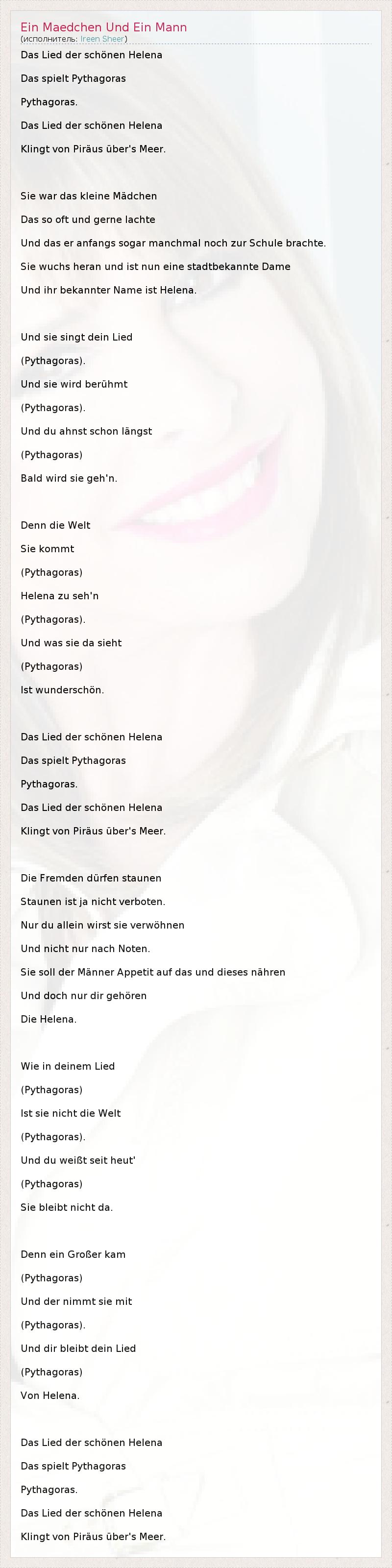 ГлавнаяИсполнителиIreen SheerEin Maedchen Und Ein Mann
