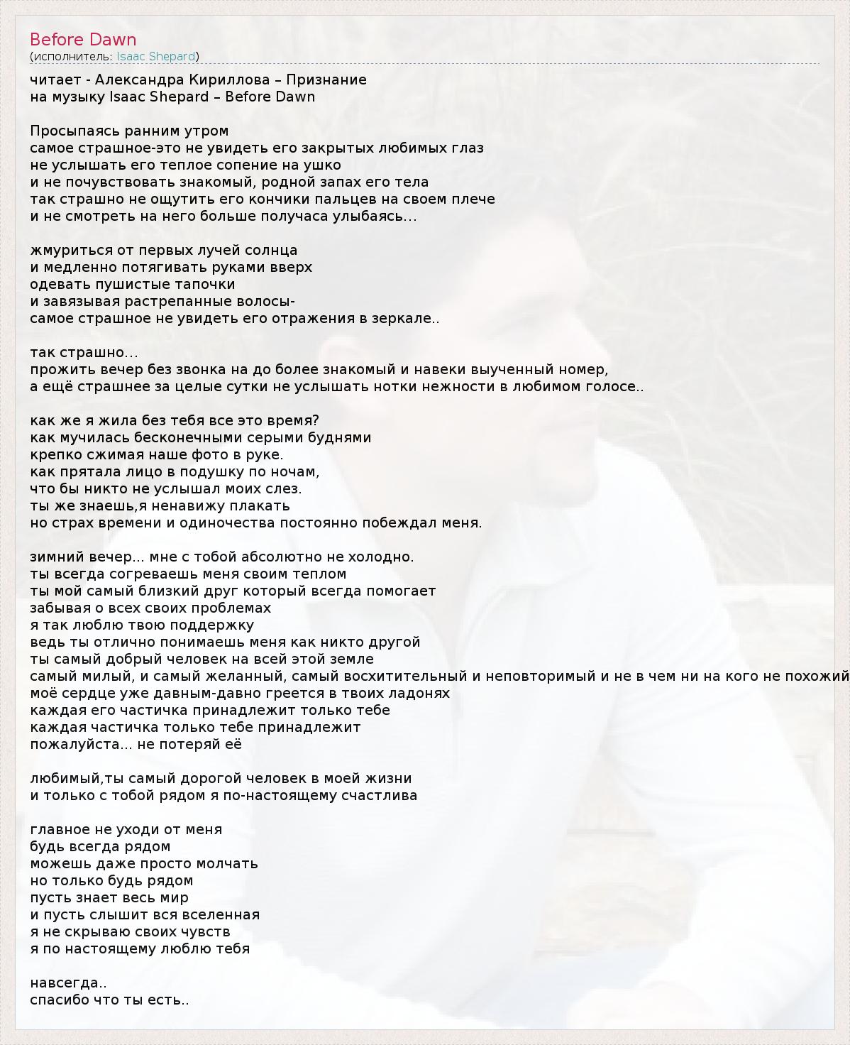 А как ты думаешь, о чем песня "Before Dawn" ?