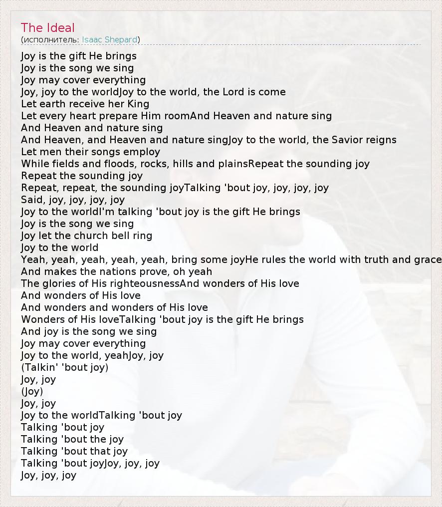 Repeat, repeat, the sounding joyTalking 'bout joy, joy, joy, joy