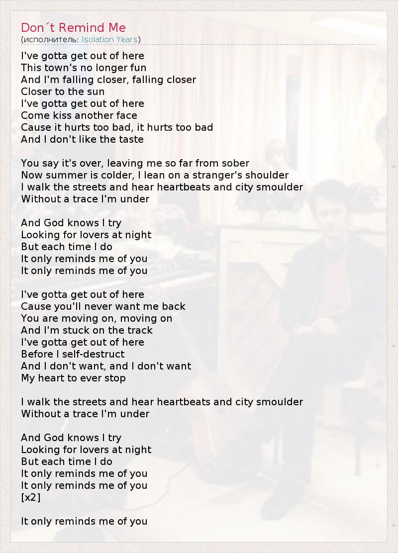 А как ты думаешь, о чем песня "Don´t Remind Me" ?