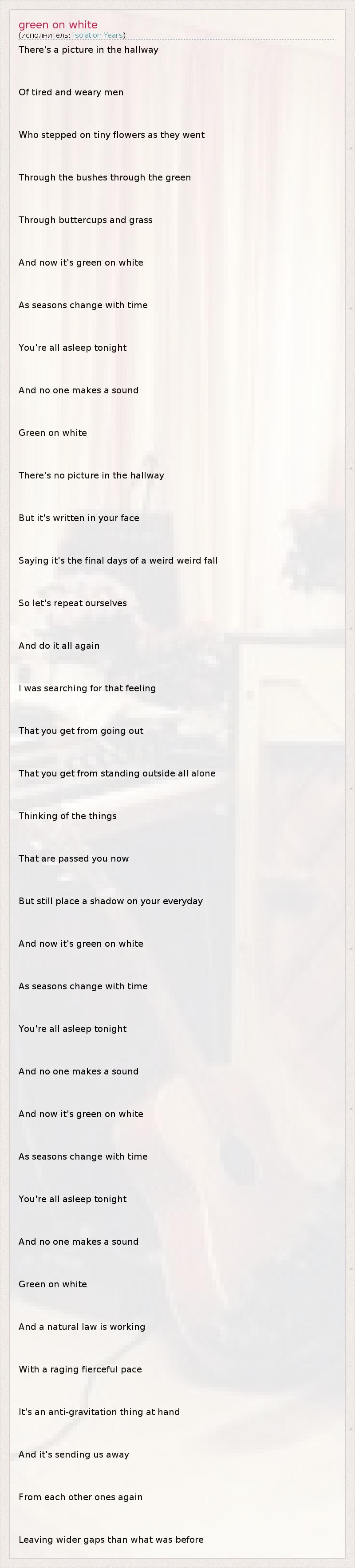 А как ты думаешь, о чем песня "green on white" ?