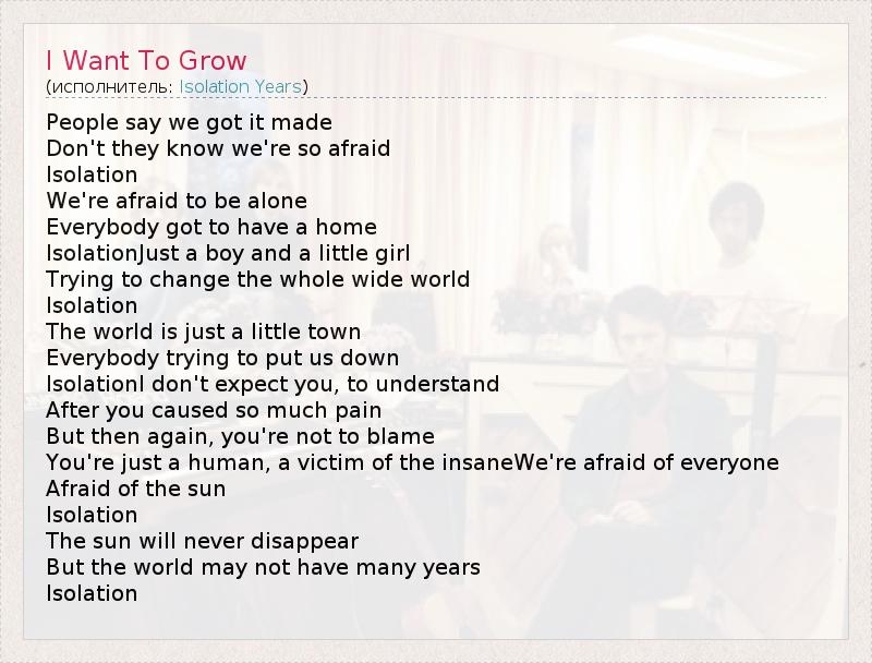А как ты думаешь, о чем песня "I Want To Grow" ?