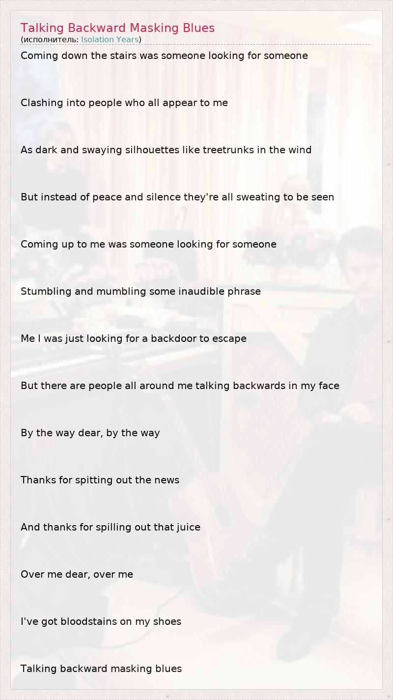 А как ты думаешь, о чем песня "Talking Backward Masking Blues" ?