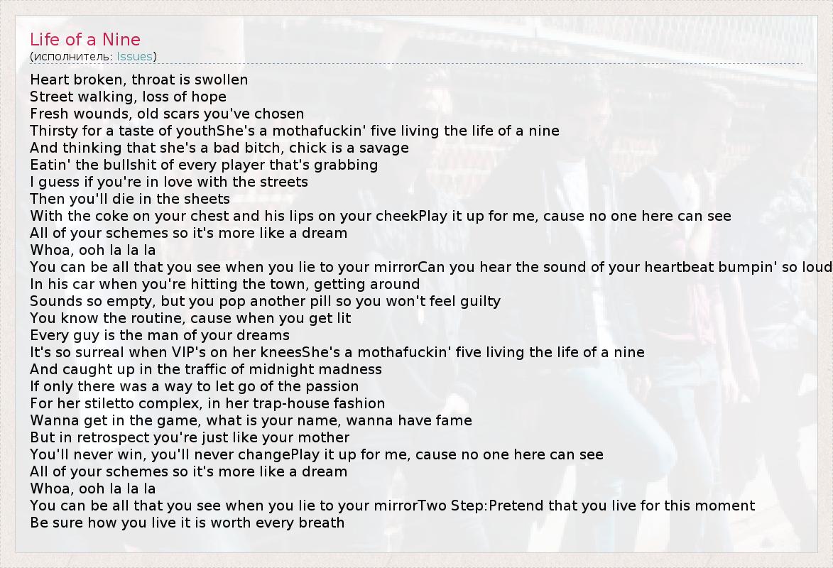 А как ты думаешь, о чем песня "Life of a Nine" ?