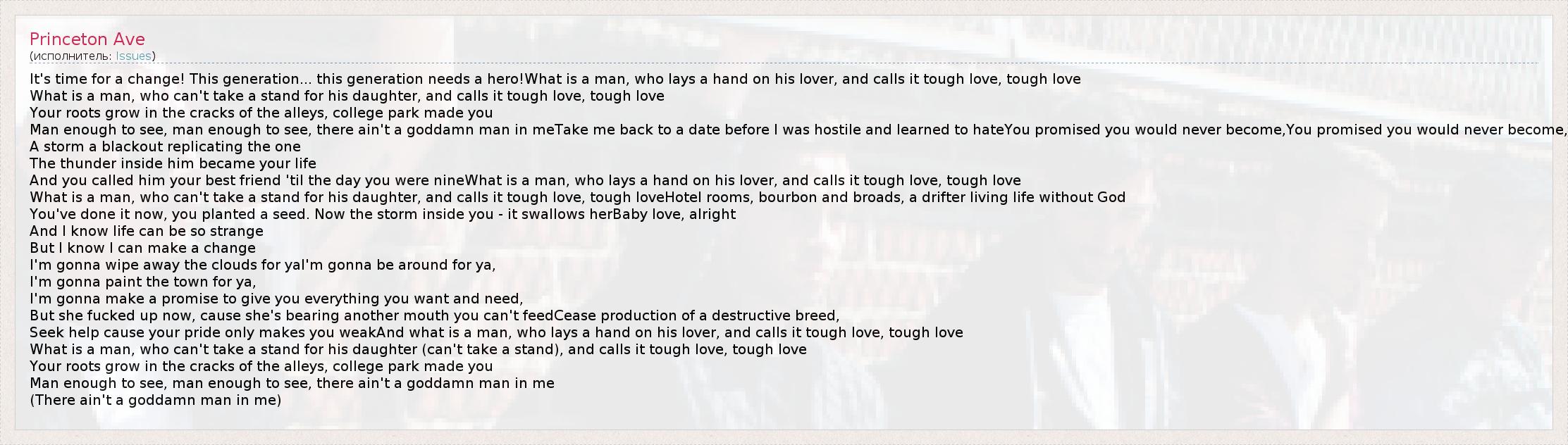 А как ты думаешь, о чем песня "Princeton Ave" ?