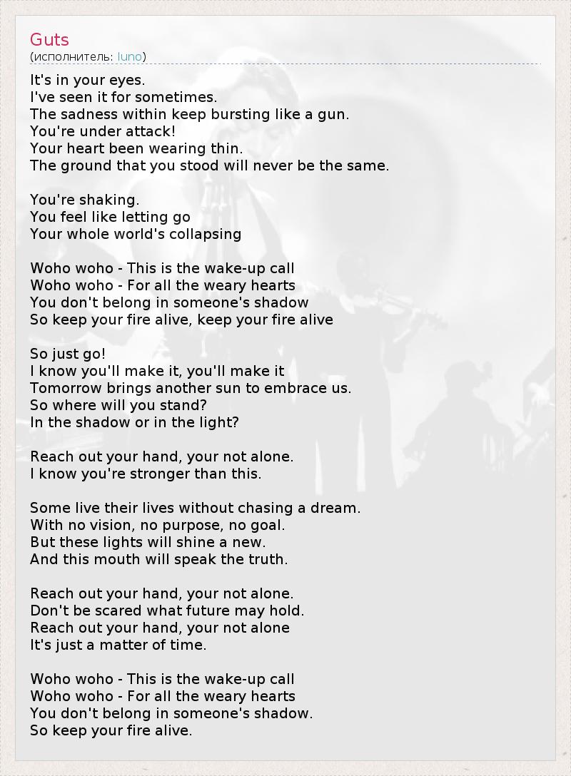 А как ты думаешь, о чем песня "Guts" ?