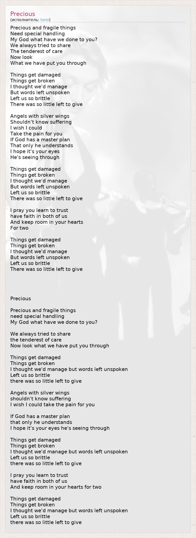 А как ты думаешь, о чем песня "Precious" ?