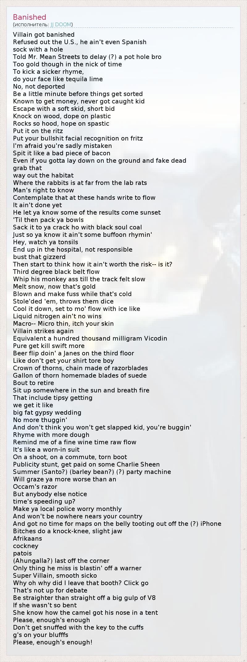 Это интересно:THE NEW MF DOOM ALBUM ON LEX RECORDS. CD NOW SHIPPING. 2LP COMING 9/21. JJ= PRODUCER JNEIRO JAREL, DOOM=DOOM. THIS RECORD CAME TOGETHER IN THE PAST YEAR WHILE DOOM HAS BEEN LIVING IN EXILE IN LONDON.