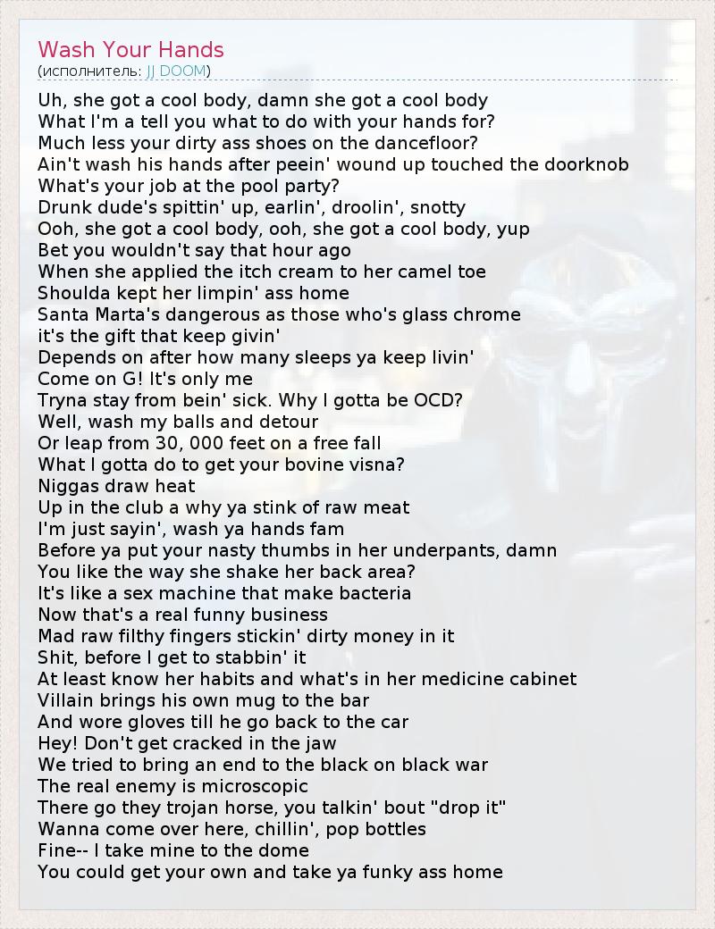 А как ты думаешь, о чем песня "Wash Your Hands" ?